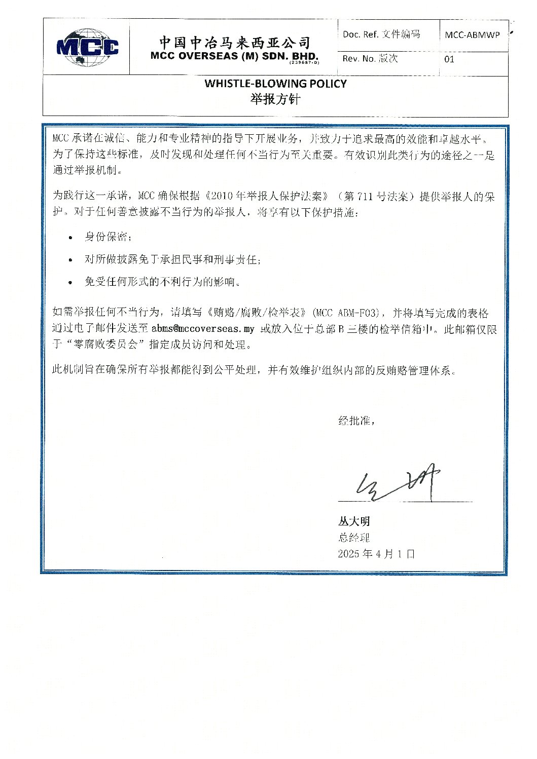 MCC_ABMWP_01_Whistle-Blowing Policy_Mandarin